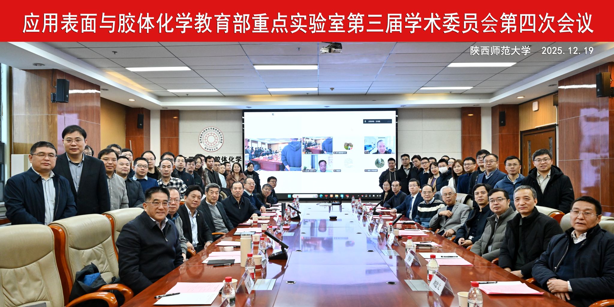 12月19日上午,应用表面与胶体化学教育部重点实验室第三届学术委员会第四次全体会议在长安校区致知楼1568会议室召开。重点实验室学术委员会主任韩布兴院士(中国科学院化学研究所),副主任谢素原院士(厦门大学,线上参会)、朱为宏院士(华东理工大学)、高子伟教授(延安大学),委员郝京诚教授(山东大学)、李广涛教授(清华大学)、梁永民教授(兰州大学)、刘世勇教授(中国科学技术大学)、施章杰教授(复旦大学)、孔杰教授(西北工业大学)、黄飞教授(华南理工大学)、栾新军教授(西北大学)、丁立平教授(陕西师范大学)、吴立新教授(吉林大学、线上参会)、黄建滨教授(北京大学,线上参会)、张晓兵教授(湖南大学,线上参会)、黄飞鹤教授(浙江大学,线上参会)出席了会议。
