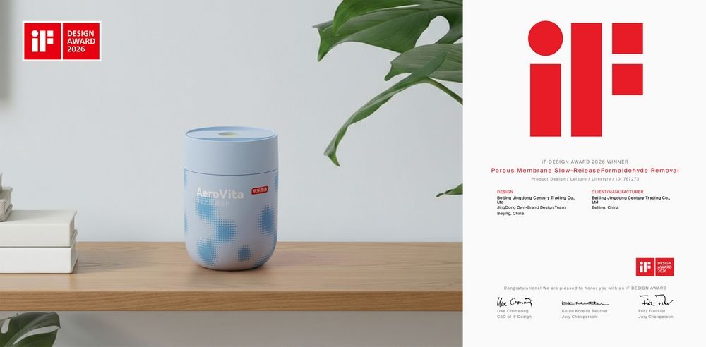 近日,由京东京造设计团队为陕西师范大学新概念传感器与分子材料研究院与京东京造合作开发的、基于房喻院士团队气体缓释膜技术专利技术打造的“呼吸之元膜法杯”产品的包装设计获得2026年IF设计奖。
