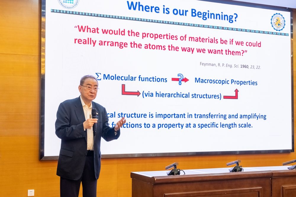 报告会上,程正迪院士从分子功能与宏观特性的构效关系出发,剖析了传统高分子材料发展的关键挑战,并阐释了“精准化学”“精准物理”与“精准加工”的核心理念。他重点介绍了Molecular Lego(分子乐高)策略在软合金巨分子超晶格工程中的创新应用,从分子层面论述了F-K超晶格结构的构建路径,揭示了软物质中F-K相行为的演化机制,并解读了超大空间不对称超级晶格结构的形成机理等问题。