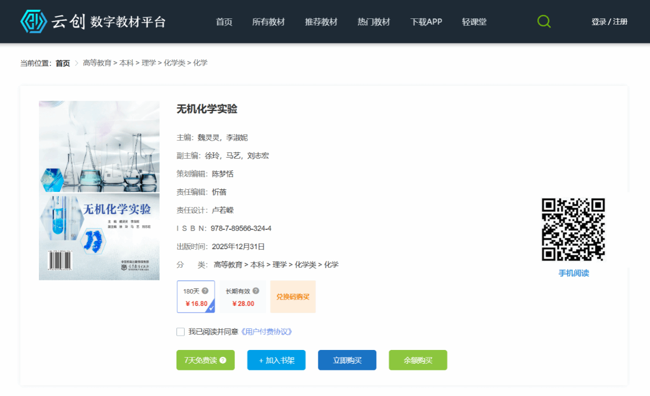 《无机化学实验》数字教材网址:https://etextbook.hep.com.cn/book/1458010287394258944