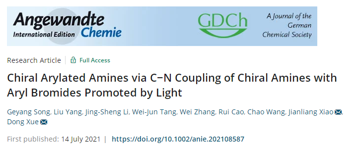 相关研究工作发表在Angew. Chem. Int. Ed.上,论文第一作者为陕西师范大学化学化工学院博士研究生宋戈洋,肖建良教授和薛东教授为论文通讯作者。论文信息:Angew. Chem. Int. Ed. 2021, 60, DOI: 10.1002/anie.202108587.(https://onlinelibrary.wiley.com/doi/10.1002/anie.202108587)。